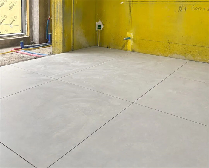 △我們的瓦工師傅正在貼磚,每鋪一塊瓷磚,都會(huì)用橡皮錘反復(fù)敲實(shí),確保瓷磚和地面貼合緊密。
